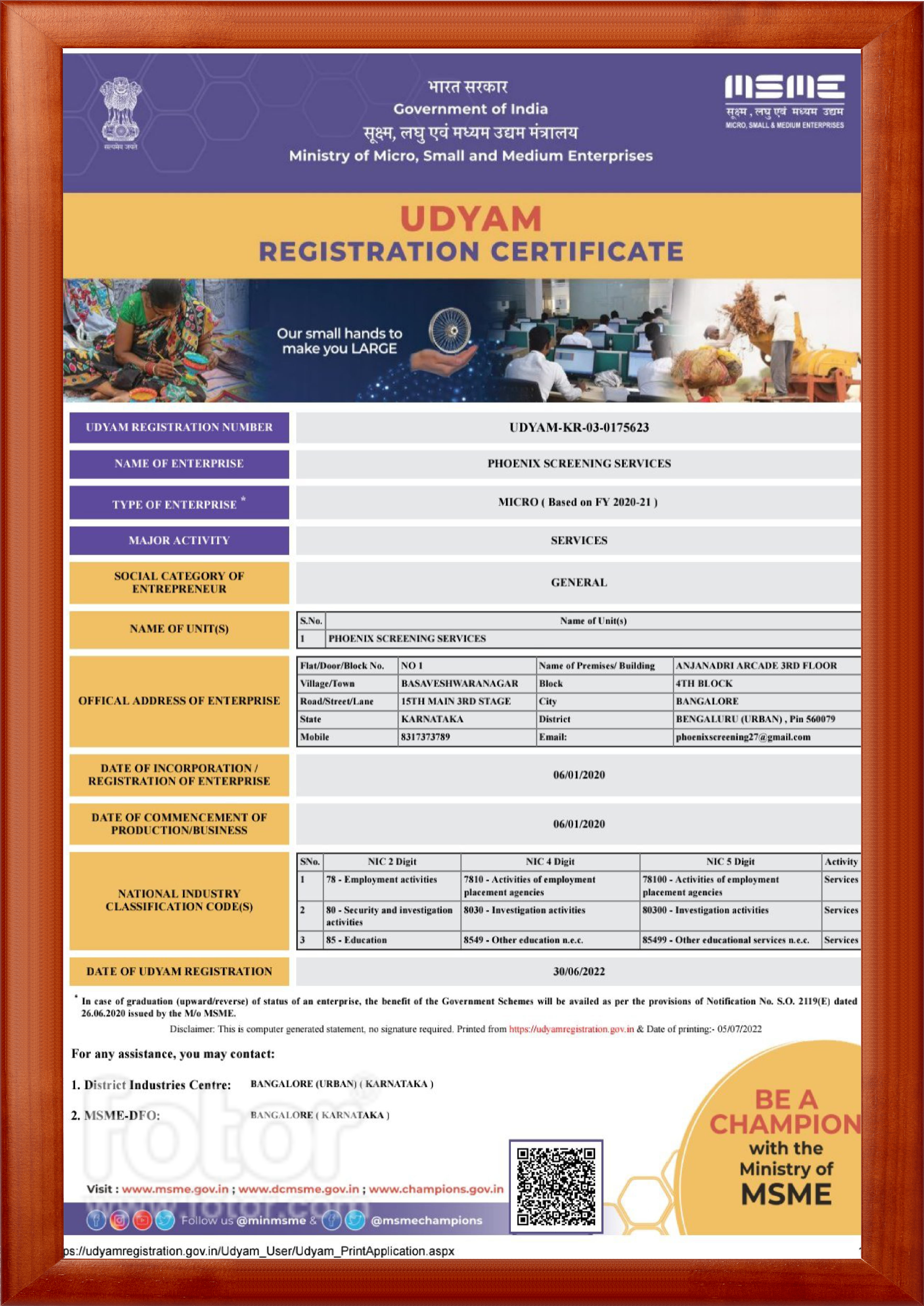 Phoenix team Verified with Management /HR for details such as claimed service period, position thought and salary drawn every month, reliving status and integrity through mails and oral confirmation and office visit as well. In case of verbal confirmation, details such as name designation personal contact number are recorded and call logs are maintained. Company checks against possible false-list and against ROC/MCA database are done to ascertain the genuineness of company or block list in government of India.